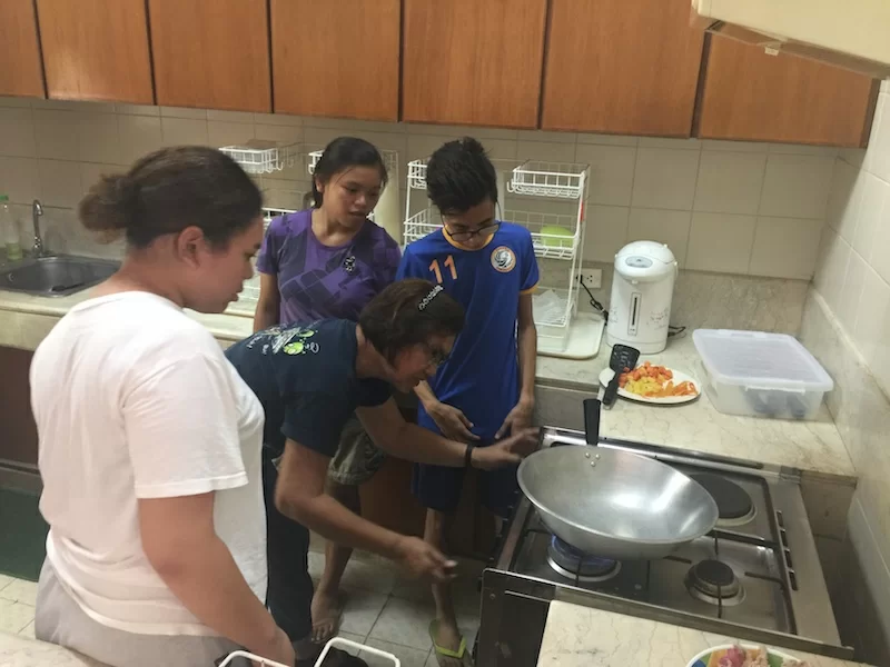 I peek my head out of my office and I smell a wonderful aroma. Auntie Lourdes, a longtime house mom, is leading a cooking class in the school kitchen. She is teaching our older kids how to cook a delicious Filipino meal.
